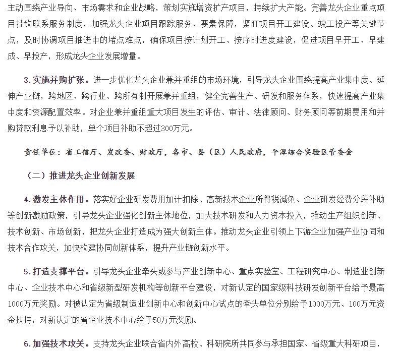 《行动计划》坚持把做实做强做优实体经济作为主攻方向,坚持强龙头、强配套、强融合。提出了“三个一批”,着力做优做强一批现有龙头企业,加快壮大一批龙头培育企业,策划引进一批新的龙头企业;围绕龙头企业创新发展、对接引进、固链延链等方面6项重点任务。
