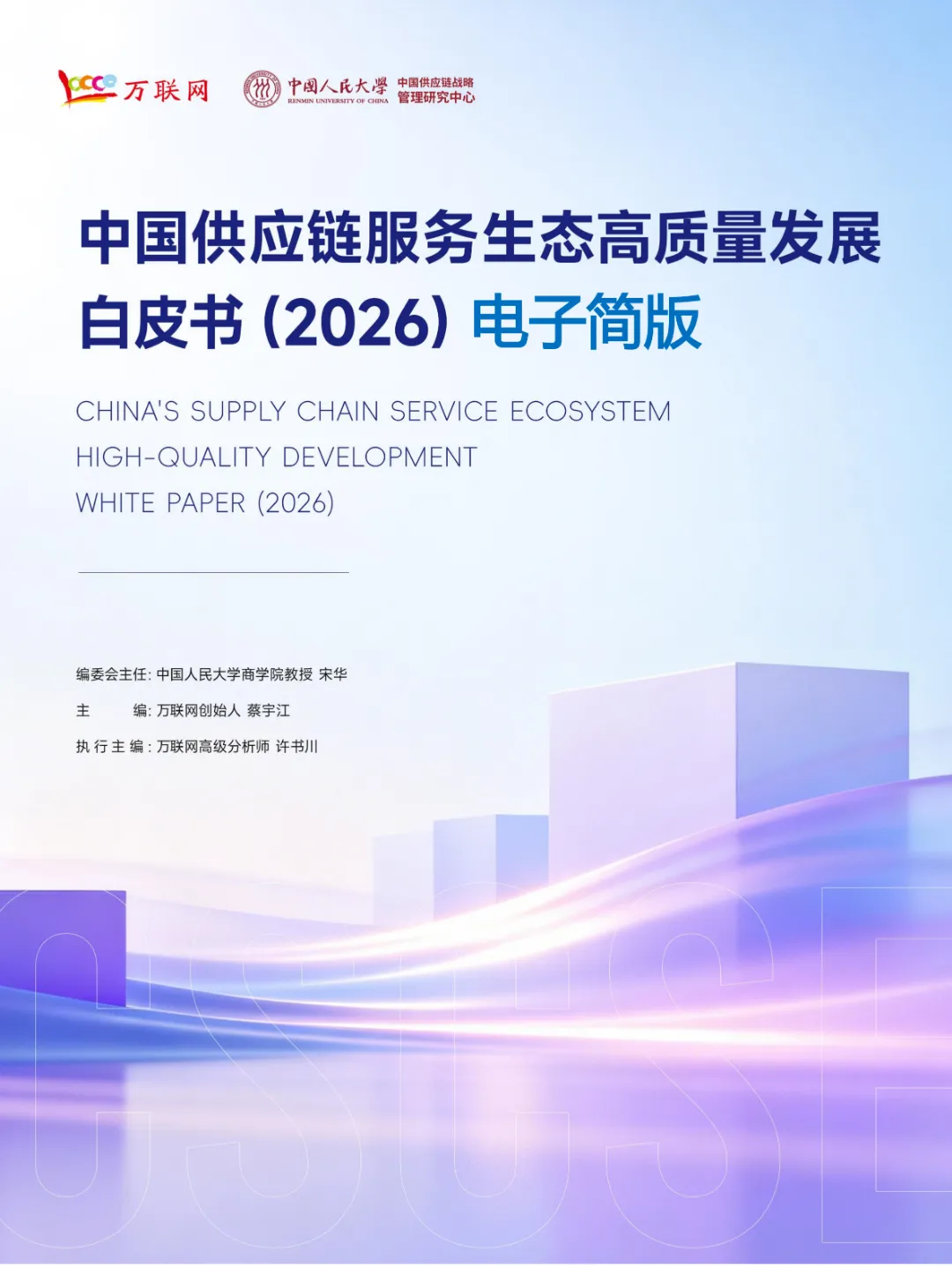2026年3月26日,由万联网联合中国人民大学中国供应链战略管理研究中心及一众业内专家重磅编制的《中国供应链服务生态高质量发展白皮书2026》(简称:白皮书)经由中国人民大学商学院宋华教授在第十三届产业数字化与供应链金融创新论坛现场正式发布。