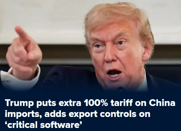 就在昨天(10月10日),美国总统特朗普在社媒上发布系列重磅消息:宣布美国将从11月1日起对所有从中国进口的商品加征100%的关税,同时对“所有关键软件”实施出口管制,以回击中国对稀土矿物实施新的出口管制措施。