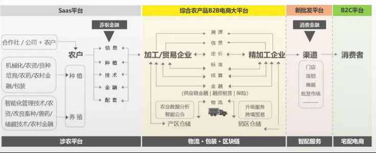 从2017年起,我们就在探索产业发展与地方产业园区协同发展的问题,也在区域省份探索过集散地的数字化,疫情三年,加上内贸的内卷和部分产业出海转移,电商直播平台,本地团购的出现,让很多集散地出现商户离场导致经营惨淡情况,如何有效产业招商,改变原有的运营思维,包含产业金融对上下游延申,商户的赋能,有一些酸甜苦辣的回忆,也有一些运气,我们在摸索中也产生不错的效果。借用一张农业产业蓝图: