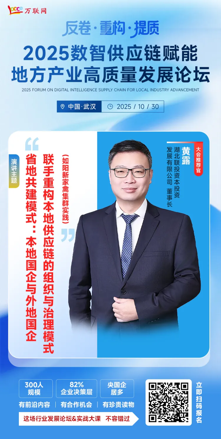如果你想深度学习湖北联投资本采用“省地共建”模式后的落地技巧与实践经验,那么就不要错过万联网将于2025年10月30日在武汉举办2025数智供应链赋能地方产业高质量发展论坛。300人规模、82%决策层参与、央国企居多(金控集团、投资集团、发展集团、城投集团、产投集团、交投集团、商投集团、铁投集团、水投集团、农投集团、物流集团、供销社、农业合作社、供应链公司等)。